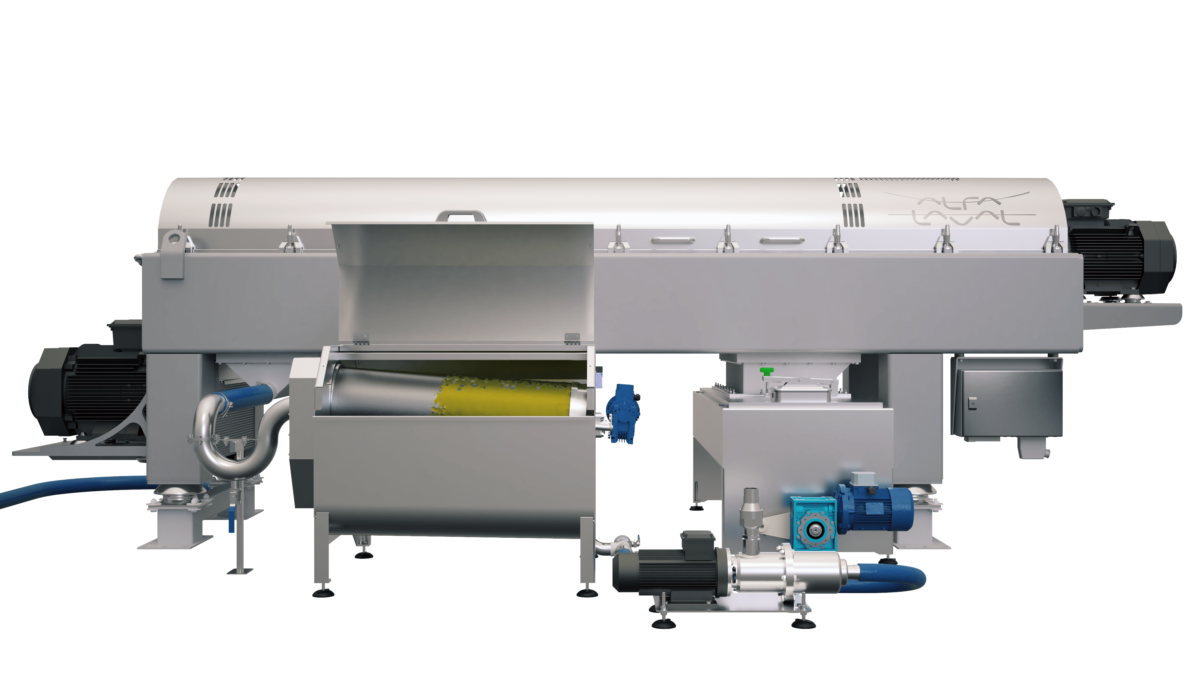 La zona de alimentación FeedProtect, de diseño exclusivo, garantiza una aceleración suave del producto y una mínima turbulencia, lo que se traduce en una baja abrasión y un bajo consumo de energía. El diseño de FeedProtect está equipado con revestimientos de protección contra el desgaste reemplazables, lo que garantiza un alto tiempo de actividad de su centrífuga decantadora.